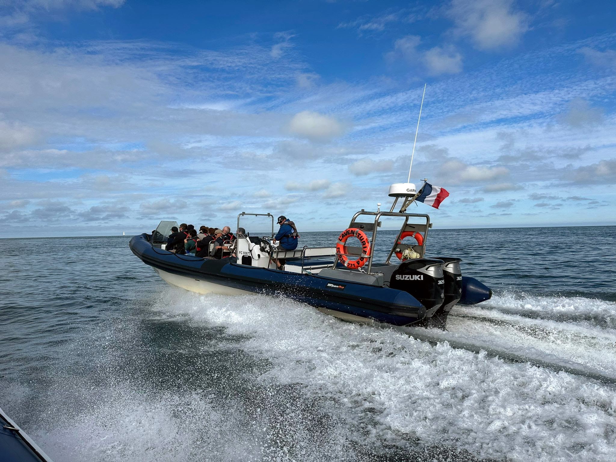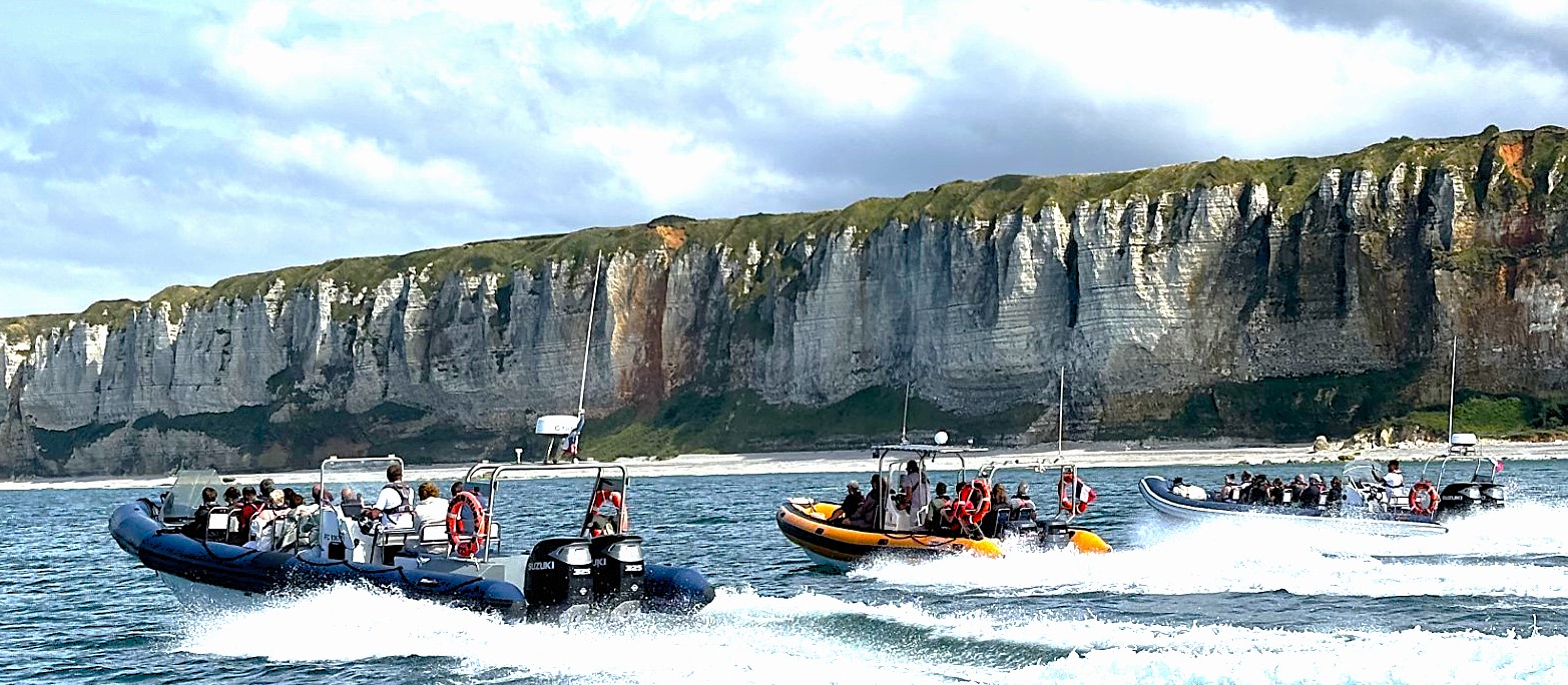 Embarquez à bord d’un semi-rigide , avec 12 places assises, et partez à la découverte des côtes normandes entre Fécamp et Étretat à bord d’un speed boat de 12m de 650cv.