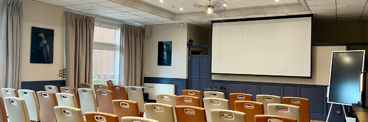 Découvrez 3 salons donc 2 modulables et parfaitement équipés pour des événements d’entreprises jusqu’à 130 personnes.