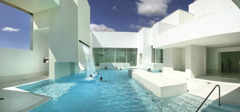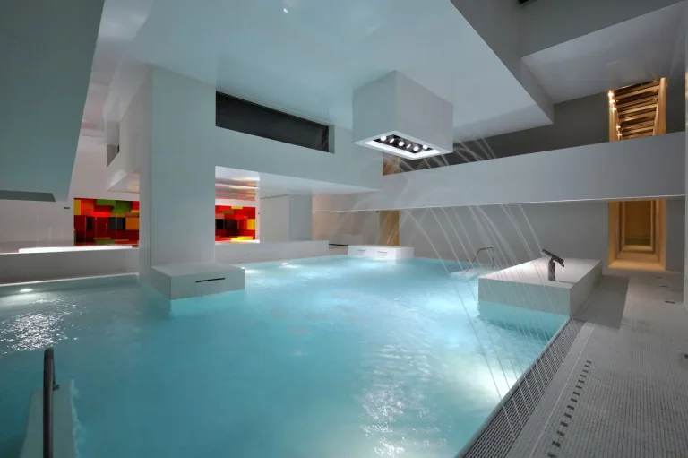 Des installations modernes : piscines intérieures et extérieures, ainsi qu’un espace bien-être avec sauna et hammam.