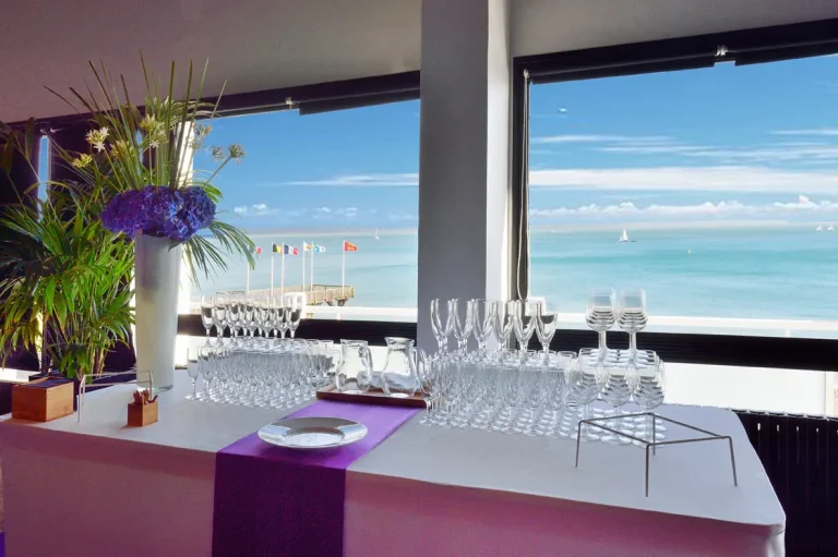Rien de tel que de terminer une journée de travail par un cocktail face à la mer. Le Palais des Régates propose des espaces de réception intérieurs et extérieurs, parfaits pour accueillir vos invités dans un cadre convivial et raffiné. Profitez de la vue sur la baie et le coucher de soleil tout en dégustant des mets de qualité, préparés par des partenaires traiteurs locaux qui sauront satisfaire vos convives.