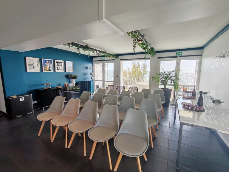 Le Palais des Régates de Sainte-Adresse, situé sur le littoral normand, est l'endroit idéal pour vos événements professionnels. Niché en bord de mer à quelques pas du Havre, ce lieu emblématique allie élégance et modernité, offrant un cadre unique pour l'organisation de conférences, séminaires, cocktails et activités de team building.